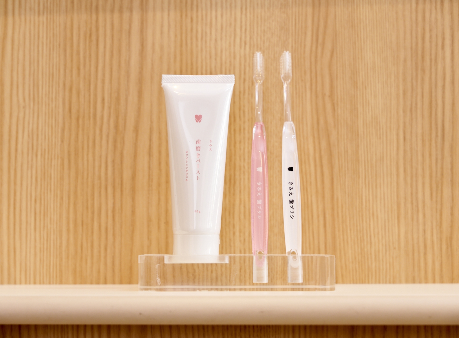 当院オリジナルの歯磨き粉「きみえ歯磨きペースト」と歯ブラシ「きみえ歯ブラシ」を取り扱っています。院内で販売しておりますので、気になる方はスタッフにお声がけください。